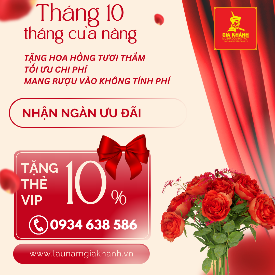 Tháng của yêu thương và tôn vinh phái đẹp đã đến! Lẩu Nấm Gia Khánh hân hạnh đồng hành cùng bạn tạo nên những khoảnh khắc ấm áp và ý nghĩa nhất cho ngày 20/10 này.